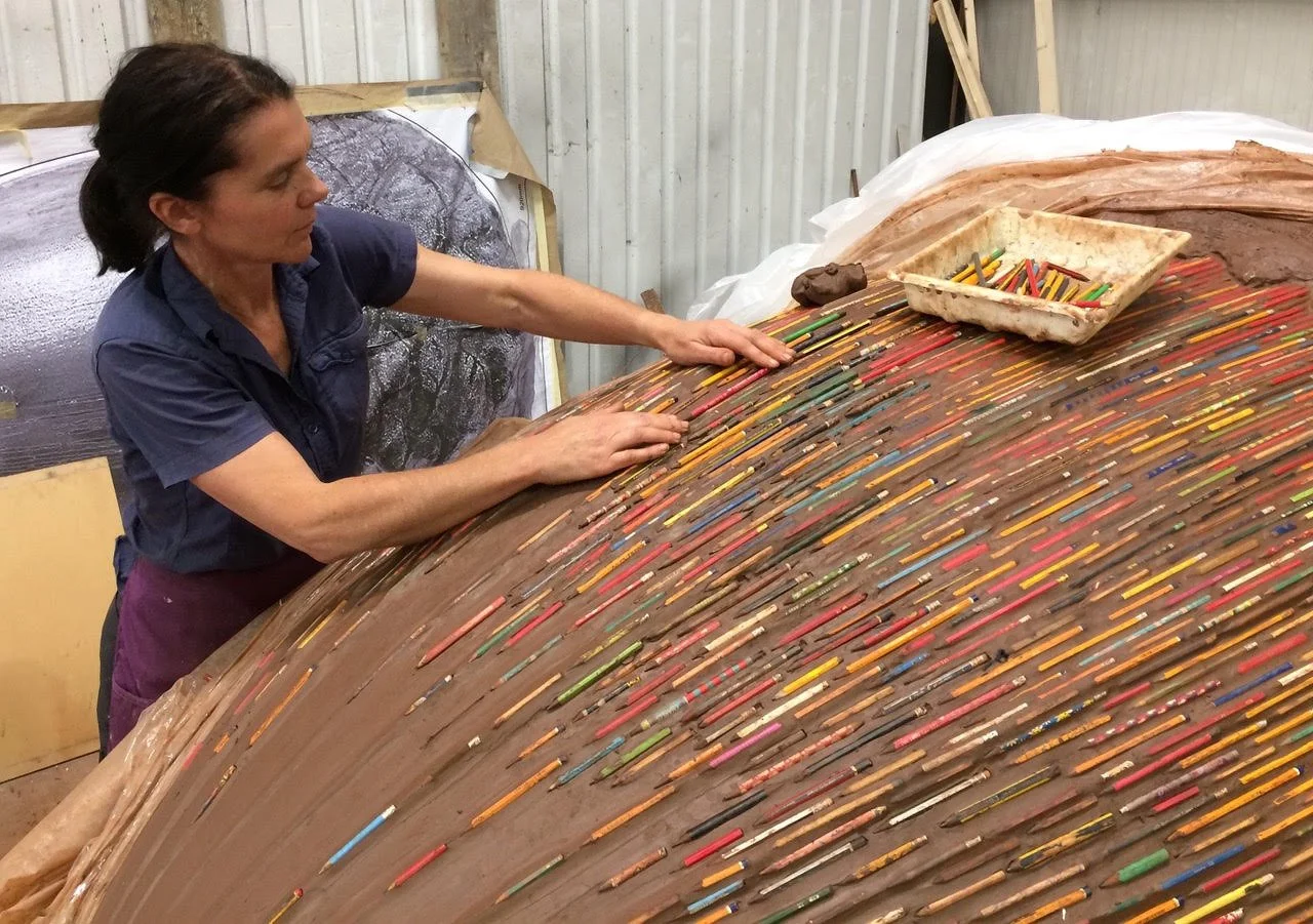 Her Moonwalk (2002), a series of discs set into a prome-nade, is in Morecombe Bay in Lancashire, while Egg (2001) was commissioned by the Cardiff Bay Arts Trust.