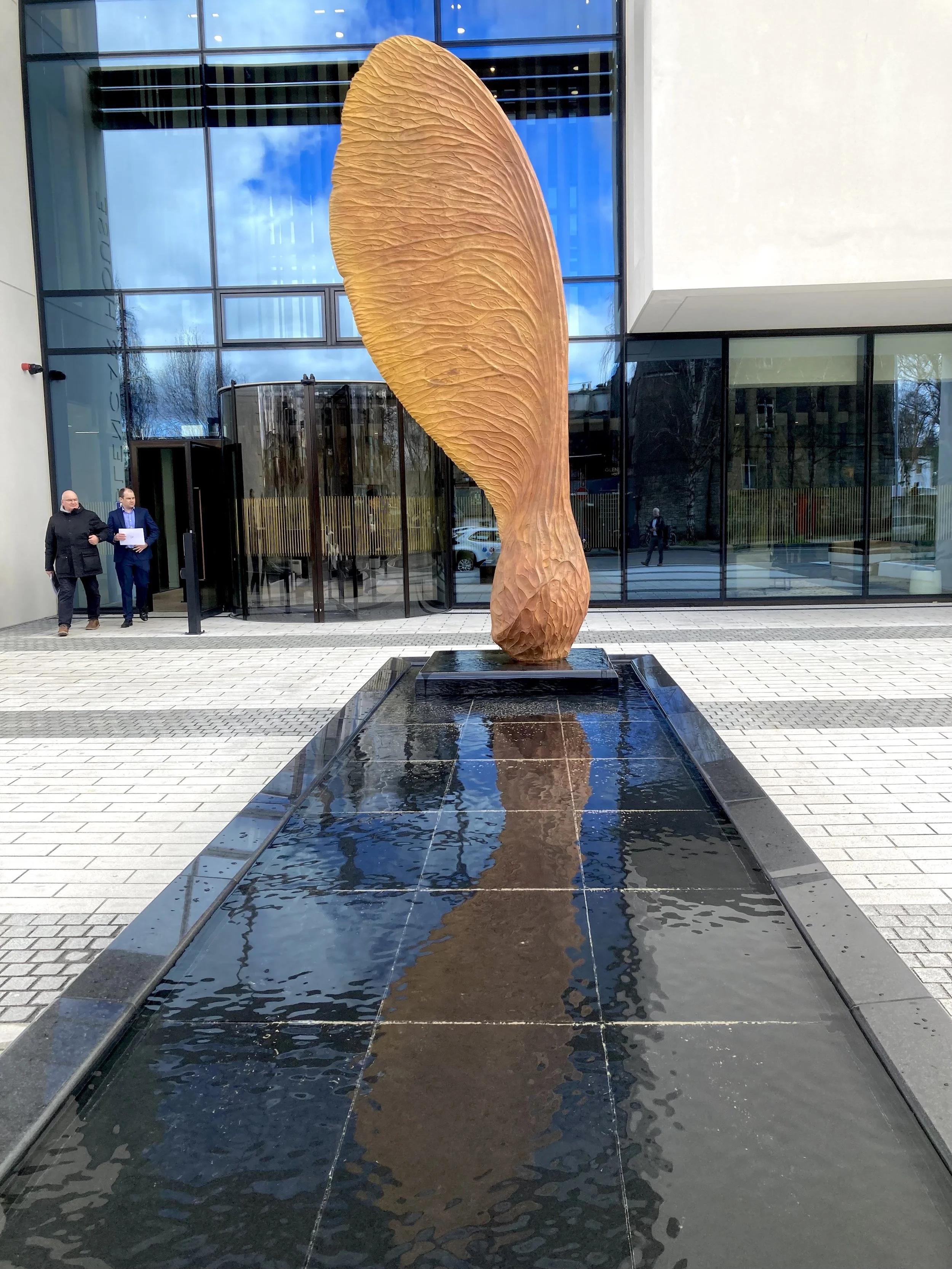 Síol stands over 4 meter high, cast in bronze & patinated a golden brown.