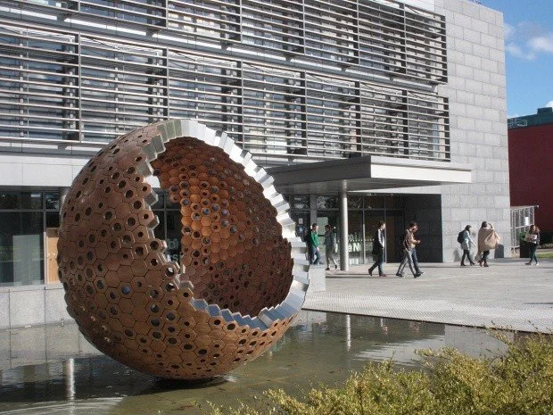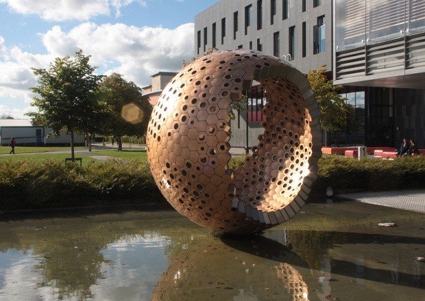 The sculpture ‘Waggle Dance’, commissioned for the plaza outside the Iontas Building, embodies the creativity, intellectual endeavour and commonality behind the activity of the university through the metaphor of the beehive.
